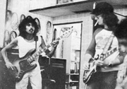 "In 1977 when I was living in Holland, I was sitting at home one evening, having just restrung my Gibson guitar, I got a phone call from Zwolle rail station from Chris, whom I have never met or spoken to, until that moment. He needed a place to stay for a few nights until he could rendezvous with Jon Strong, for some planned gigs. I went by car to collect him from Zwolle. He walked into my house and his gaze fell upon the Gibson, “Oh! Nice guitar man!” he said, “Can I try it?” He played it for about 5 minutes talking all the time about what a beautiful instrument it was, when he put it down the brand new strings had turned green and lost all their sound! “Oh yeah, I forgot to tell you Mike, I have this really acid sweat which destroys guitar strings!”.