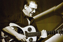 "When I think of Chris, I can't think of him as gone because so much of him is still here. His old baseball cap, his picture on the wall playing the dobro at Gaste Garage. The many recordings of him live on forever. His playing will live on forever. I see him at the restaurant with a book held way up in his face. I see the large stein of beer next to his feet on stage. I feel the sweat on his t-shirt as we take another bow. I hear his laugh and deep voice blowing out the doors of a pub.